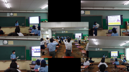 西京警察署でチャレンジ体験を行っている生徒が、中学校で非行防止教室を行いました。役割分担がしっかりできていて、説明も大変わかりやすいものでした。制服もとても似合っていました。残りの活動も頑張って下さい。
