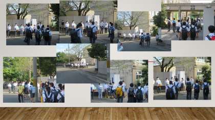本日は、校門前で地域の皆様、PTAの皆様とともに挨拶運動を実施しました。