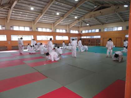 1年生は柔道に取り組んでいます。安全には十分留意し、授業を進めて参ります。
