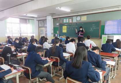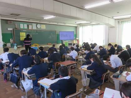 2年2組の数学は、合同な図形の性質を理解し、作図することを目標に授業を行いました。合同な図形の対応する辺や角の性質はどのようなものでしたか?