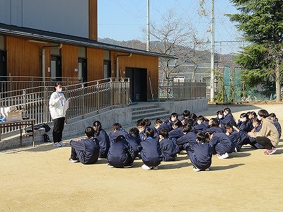 1年4組の保健体育は、アルティメットを行いました。初めに授業の流れを確認し、実践的なパスの練習を行いました。どうすれば相手が取りやすい位置に投げられるかをそれぞれ考えながら活動しました。