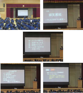 6限目に体育館で後期生徒総会が行われました。1年間の生徒会の方針を決める大切な会です。提案者はもちろん、生徒会員の全校生徒みなさんも真剣に聞き、すべての議案が承認されました。全員で決めた方針です。これからも生徒のみなさん全員で樫原中学校をよりよくしていってくださいね。