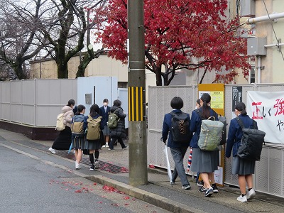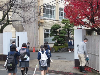登校時間には雨がやんでくれました。