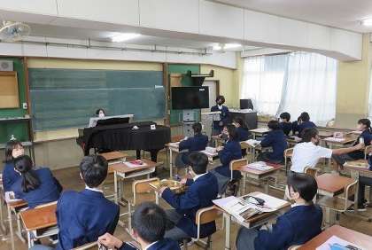 2年3組の音楽は、色々な楽器に触れ、ピアノの演奏を聴きながら、好きなタイミングで楽器を鳴らしました。最後はクリスマスソングに合わせて楽器を鳴らし、みんなで音楽に親しみました。