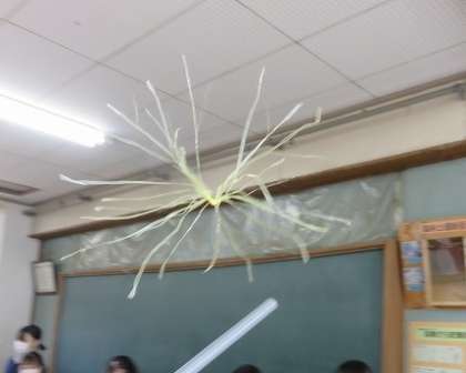 2年2組の理科は、静電気に関する実験を行いました。塩ビパイプとビニール紐に静電気を貯め、静電気の力(引き合う・退け合う力)を実際に見て、確認しました。