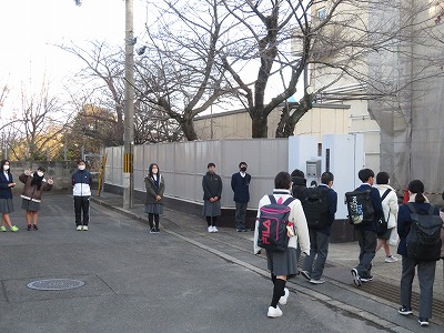 多くの人が校門で出て登校してくる仲間に「おはようございます。」とあいさつをしてくれています。それに「おはようございます。」と応じてくれるみなさんのようすを見ていると、寒い朝にもかかわらず、あたたかな気持ちになれます。GOOD BEHAVIOR!!