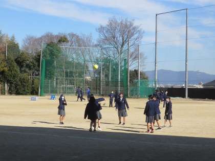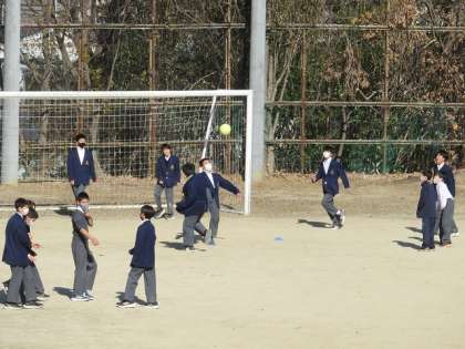 昼休みの様子です。寒い中でしたが、グラウンドでは元気に仲間とボールを使って体を動かす生徒のみなさんの姿がありました。