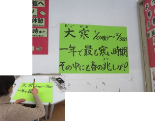 学校司書の先生に、図書室前に掲示するポスターを作成していただきました。図書室前を通った時は、足を止めて見てください。