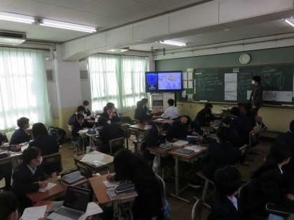 1年2組の社会は、墾田永年私財法がなぜ制定されたのかを、過去の政策の問題点や当時の社会背景から、グループで考えました。その後、天平文化の基礎的な知識を学びました。