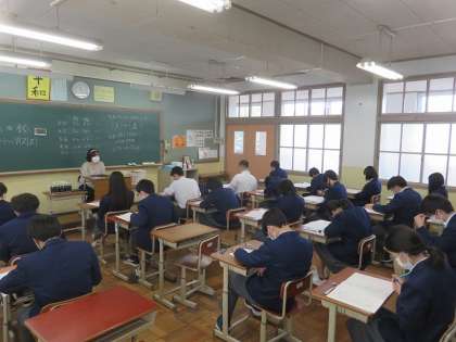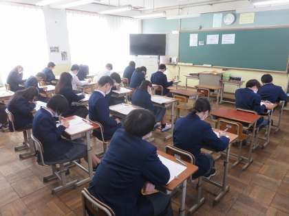今日から3年生は定期テストが始まりました。「始め」の合図から時間いっぱいまで問題と向き合い、考えていました。準備してきた成果は発揮できましたか?この後の時間を計画的に使ってくださいね。
