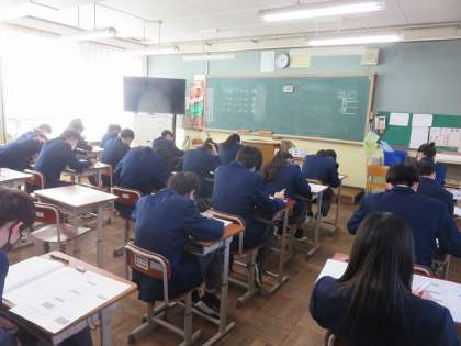 3年生は定期テストの2日目を迎えました。今日も1時間目から鉛筆を走らせ、テスト問題に挑んでいました。手ごたえはどうでしたか?3年生にとって今回が中学校で最後の定期テストになります。このあとはそれぞれの進路に向けて、引き続き励んでくださいね。