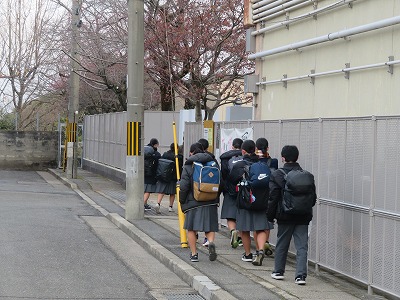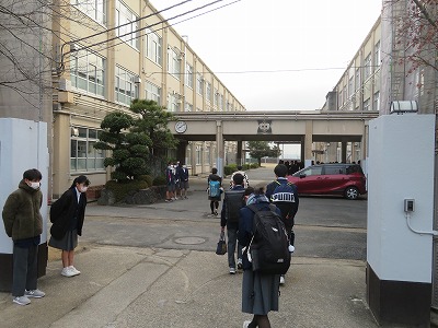 寒い朝ですが、生活委員のみなさんが校門で元気に挨拶をしてくれています。
