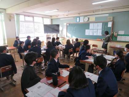 2年6組の国語は、助詞の理解を深めることを目標に授業を行いました。4人グループで演習問題に取り組み、仲間に訊いたり相手がわかるまで丁寧に教える場面が見られました。帰ってからも振り返っておいてくださいね。