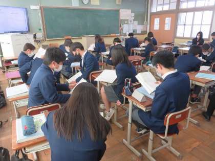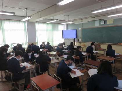 3年6組の英語は、今まで学習をしたイディオムを復習しました。ペアで確認しながら、高校入試に向けての準備をしました。帰ってからも確認しておいてくださいね。