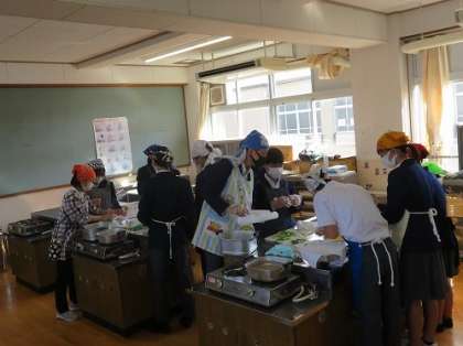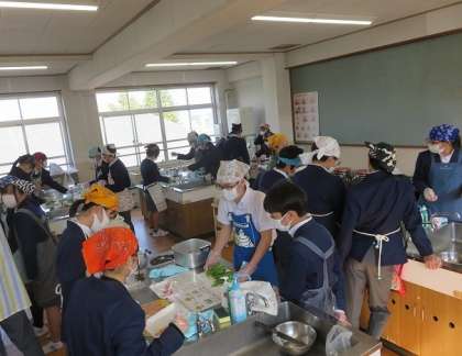 3ね4組の技術・家庭科家庭分野も午前の2クラスに引き続き、「水菜の豚肉巻き」を作りました。班でそれぞれ役割分担をし、それぞれが手際よく動いていました。美味しくできましたか?