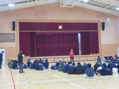 3年生の公立中期選抜に臨む生徒が、事前指導を受けました。配られたプリントに真剣に目を通し、本番に向けての注意事項に耳を傾けていました。