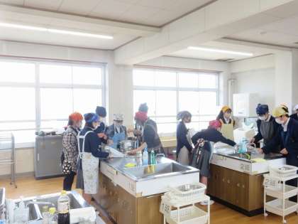 2年6組技術・家庭科 家庭分野も調理実習を行いました。事前に役割分担をしていたので、グループ内で声をかけながら手際よく活動することができました。