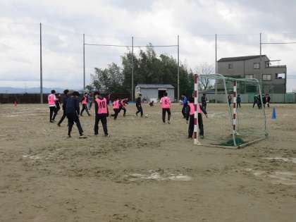 3年生が球技大会を行いました。明け方まで降っていた雨で、グラウンド状態は悪かったのですが、体育委員を中心に、水取りをしてくれたおかげで、グラウンドでの活動ができました。ありがとうございました。サッカーもバスケットボールも、楽しくも白熱した試合が行われました。学年・クラスの仲間と行う最後の球技大会はどうでしたか?