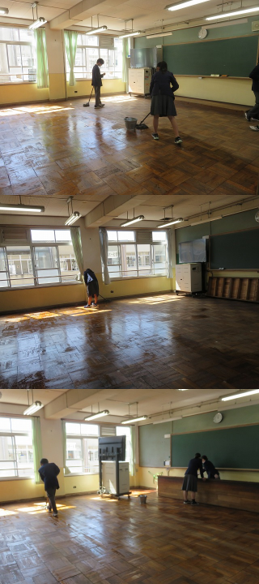 放課後に、各クラスの代表が残って教室の油引きをしてくれました。来年度、どの教室も気持ちよく使えます。ありがとうございました。