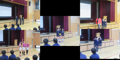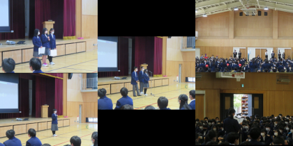 5・6限目に新入生歓迎会が行われました。全校生徒が初めて集まりました。生徒会活動の説明や、部活動紹介があり、1年生は熱心に聞いていました。最後は1年生の各クラスに学級ボール等が渡されました。
