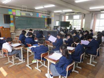 1年4組の音楽は、音の繋がり方の特徴を生かして歌うことを目標に、「京都市歌」をみんなで歌いました。高音がとてもきれいに出せていました。
