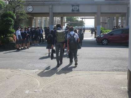 おはようございます。風が気持ちのいい朝となりました。爽やかな挨拶が交わされていました。今日も日中は気温が高くなります。水分をこまめに摂るなど、熱中症対策を行ってください。