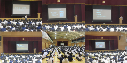5・6限目に前期生徒総会が行われました。生徒会本部役員から本部・各委員会の目標や活動内容が発表され、1年間の樫原中学校の方向性が示されました。また、各クラスからの学級目標の発表がありました。今年度も樫原中学校が生徒のみなさん一人一人の協力や活動を通してよりよくなっていくのが楽しみです。