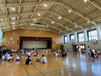 小中連携部活動交流が松陽小学校でありました。今日はバスケットボール部が小学生と活動をしました。光化学スモッグ注意報が出ていたので、体育館でかつ軽度な練習をしました。活動を一緒に行った児童のみなさん、楽しかったですか?