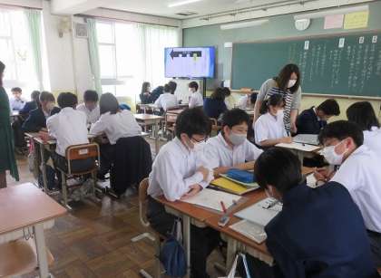 2年4組の国語は、「思考の視覚化」について学びました。「アイスプラネット」で人物相関図を描いたメリットや、「課題や問題を解決する」ための手順について、各自で考え、グループで議論しました。