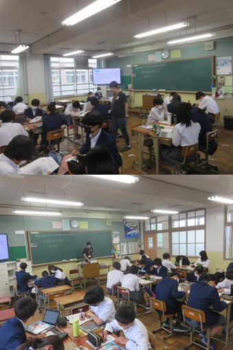 3年8組の保健体育は、環境への適応能力について、気温など外界の環境に変化が起きた時に、体に変化が起こる仕組みについて説明できるように考え、グループの仲間の意見を聴き、まとめました。
