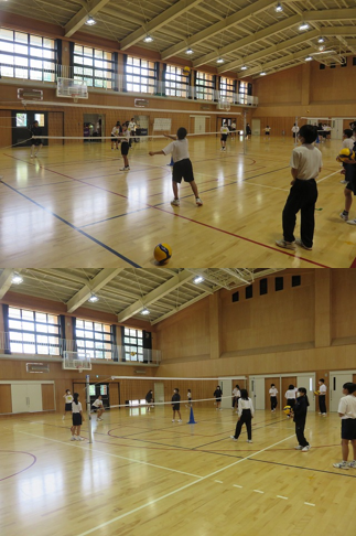 1年4組の保健体育は、バレーボールでサーブ練習を行いました。ネットが高くなかなか相手コートに入らない人もいましたが、周りの仲間にコツを聴いて、入るようになりました。
