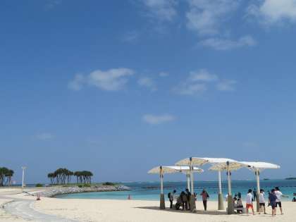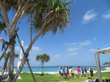 午前中のエメラルドビーチでの様子です。天気に恵まれ、青い海と白い砂浜がとてもきれいですね。きれいな海に入ったり、砂浜で活動したり、仲間と楽しい時間を過ごしました。