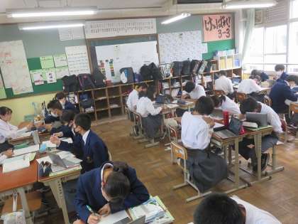 3年3組の国語は、修学旅行の事後学習として、新聞を作成しました。各自で今回の修学旅行を振り返り、学んだことや感じたことなどをそれぞれ工夫して見やすいように作成していました。