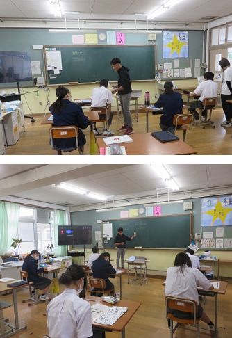 3年1組の英語は、今まで習ったことの振り返りを行いました。文の始めと途中で大文字や小文字の違いがあることなどを確認しました。