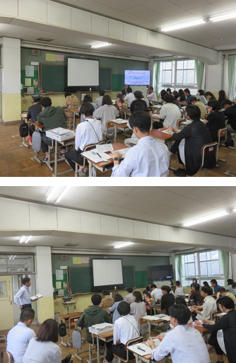 授業研究会の後、研究協議会が行われ、授業を振り返りどの場面で学びがあったか等が議論されました。その後、全体会では講師の方を招き、授業を見ていただいて今後の授業に向けてお話をしていただきました。ありがとうございました。