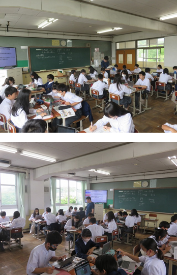 1年3組の社会は、EUの成り立ちとその影響について、EUのメリットやデメリットから考え、地域統合による人々の生活の変化を探りました。