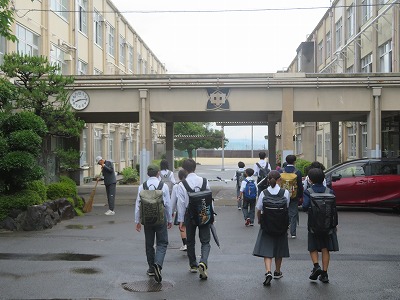 教科書を見ながら登校する生徒が見られました。テストに向けて、最後まで学習しようという気持ちは分かりますが、歩きスマホと同じで、大変危険です。家でテストに備え勉強し、通学時は周りの交通に注意し、登校するようにしてください。