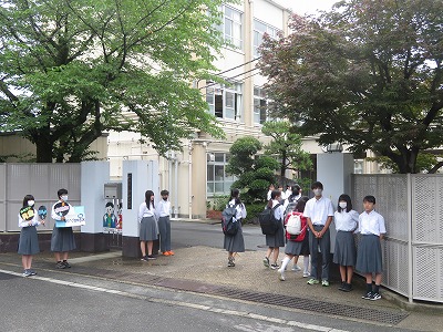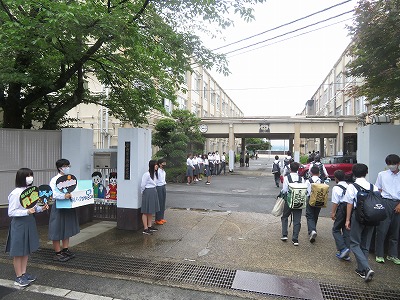 月曜日と金曜日に生徒会で牛乳パックの回答を行っています。今日も回収箱を持って活動をしてくれていました。