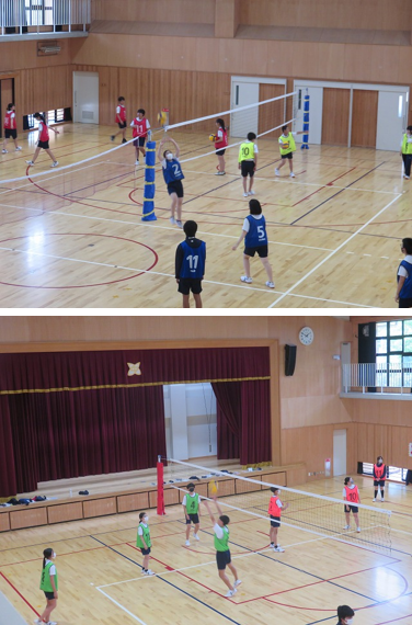 3年8組の保健体育は、バレーボールを行いました。各グループに分かれて、アンダーハンドパスやオーバーハンドパスでセッターに返す練習をしました。