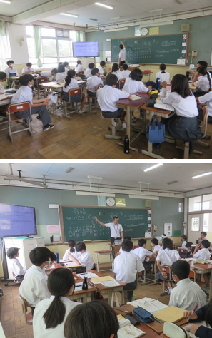 1年7組の数学は、素因数分解について学習を行い、それを利用して演習問題に挑戦しました。それぞれ自分で考えた後、グループの仲間と考え方を交流しました。