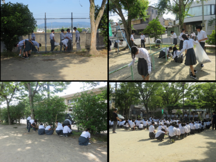 放課後に生徒会本部の取組で、地域貢献活動のひとつ「ピカピカ大作戦」が行われました。事前にボランティアを募り、多くの生徒が蛸田公園の清掃活動に参加してくれました。おかげでとてもきれいになりました。地域の方からも感謝のお言葉をいただきました。参加生徒のみなさん、ありがとうございました。