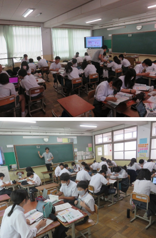 2年5組の理科は、単細胞生物と多細胞生物を比較し、その違いから一見単純に見える多細胞生物の細胞がどのような働きをしているかを各自で考え、グループの仲間の意見を聴き合いました。
