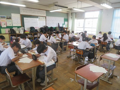 3年7組の数学は、平方根を含む式の乗除について理解し、できるようになることを目標として、学習に取組ました。