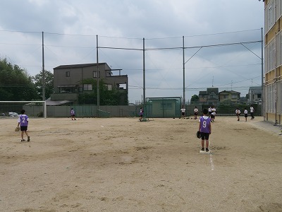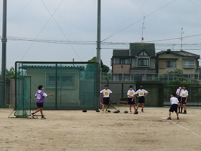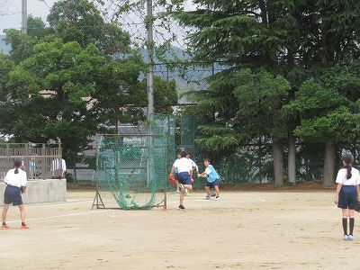 1年4組の体育は、ソフトボールを行いました。バット操作と走塁での攻撃、仲間と連携した守備が上手く出来たでしょうか。