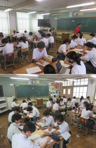 3年3組の数学は、平方根の値について、実際に電卓を使って、グループでそれぞれ平方根の値を求めました。