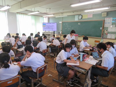 3年7組の社会は、公民的分野の現代社会の見方・考え方として「きまりの必要性や対立と合意について」民法を基に考えました。「イクラとワカメは結婚できますか?その理由は?」「浪平が2億円の遺産を残してこの世を去った。遺産はどのように配分されますか?」考えてみましょう。