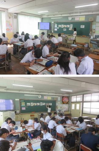2年4組の英語は、時計についての説明文から、時計の歴史を読み取り、それぞれの時計がどのような特徴をもっているかを考え、グループの仲間の意見も聴きました。