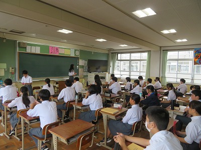 3年1〜3組の朝学活のようすです。今日の朝学活では、昨日行われてました委員会で議論された内容、決定したことを各委員が教室の世知都会会員に伝達してくれました。