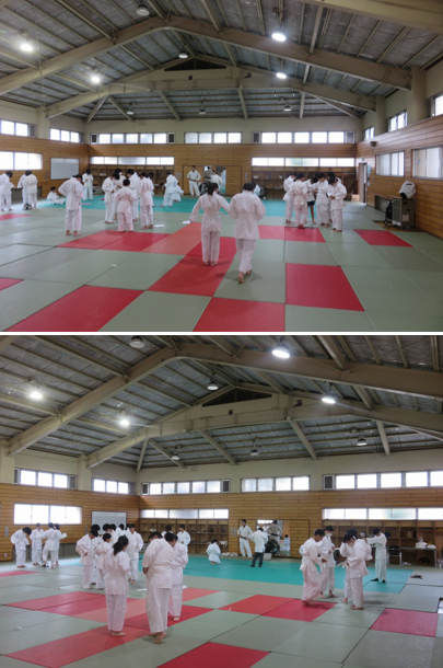 1年5組の保健体育は、柔道を行いました。今日は初めて柔道着に袖を通しました。帯の結び方が難しくてわからない人は、仲間に訊きながらなんとか結ぶことができました。次回からは一人で柔道着を着て授業に臨みます。