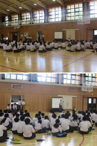 1年生がビブリオバトルを行いました。各クラスの代表がおすすめの本と、その本の魅力について制限時間内に学年の仲間にうまく伝えていました。周りの仲間も話をしっかり聞き、質疑応答が行われました。